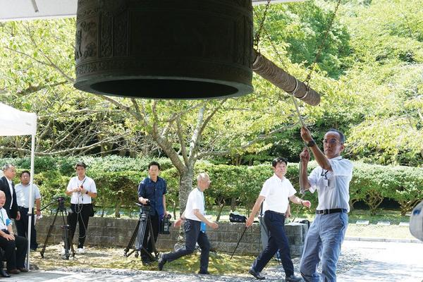 【周南】鐘の音に平和の想い乗せ 回天記念館で式典開催