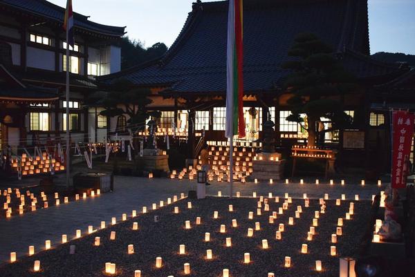 周南市福川の真福寺(大野恭史住職)の万灯会(まんとうえ)が14日夕に開かれ、境内が200個の灯篭(とうろう)で幻想の世界となった。 この万灯会は20年ほど前...