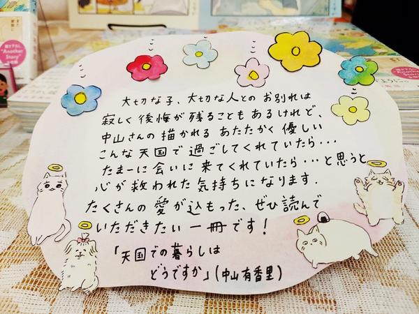 『天国での暮らしはどうですか』 作者名:中山有香里 出版社名:KADOKAWA 値段:1,485円(税込) SerenDip明屋書店 ゆめタウン徳山店 周南市青...