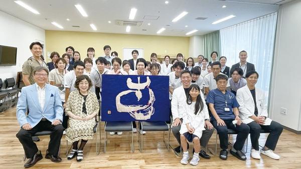 【周南】徳山病院に「恵」の刻字作品 渡邉紅雲さんが寄贈