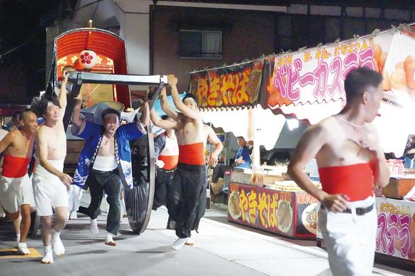 周南市鹿野地区の伝統の祭り「鹿野天神祭」が7月30日、二所山田神社やその周辺の町中で開かれ、露店や御神幸、裸坊が引く網代車が街中を駆け回って大熱狂の一夜になっ...