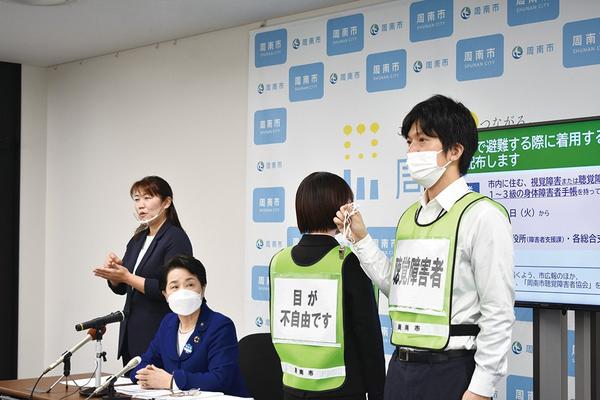 山口県周南市の藤井律子市長は18日、定例会見で市内在住の約300人の視覚、聴覚障害者に災害避難時などに着用するベストを2月1日(火)から無料で配布すると発表し...