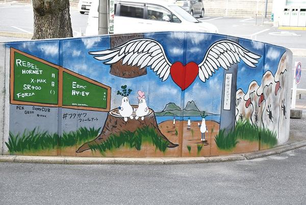 とっくり大根キャラクター描く 福川にウオールアート