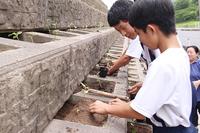 【光市】大きく育て!復興ヒマワリ 島田中生が植える