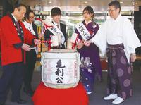 遠石八幡宮・山縣本店が新酒奉納 初詣では出足好調 新成人、外国人が威勢よく鏡開き