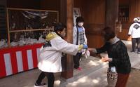 境内閑散、福引きは人気 降松神社節分祭・餅と豆は手渡し