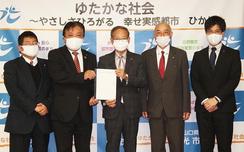 光市議会の保守系会派、こう志会(萬谷竹彦代表、4人)は9日、政策要望書を市役所で市川熙市長に提出し、次年度の当初予算編成に反映するように求めた。 要望書は萬...