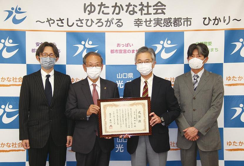 光市は18日、新型コロナウイルスワクチンの接種に全面的に協力した市医師会(広田修会長)に市川熙市長の感謝状を贈った。 同市では市川市長の指示でコロナワクチン...