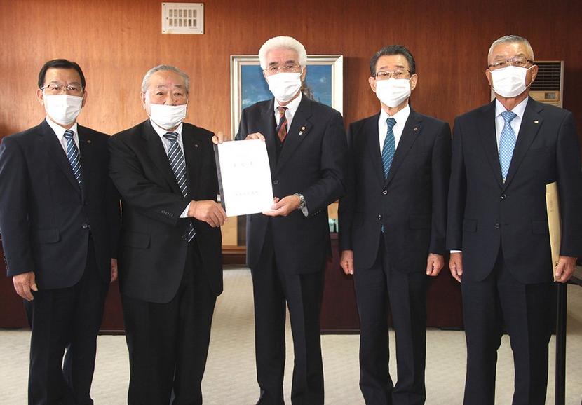 要望書は藤井勝会頭や東日出夫、有沢久両副会頭、藤山雅己専務理事らが持参した。市側は市川市長のほか太田隆一経済部長、萬治貴久商工観光課長らが応対した。