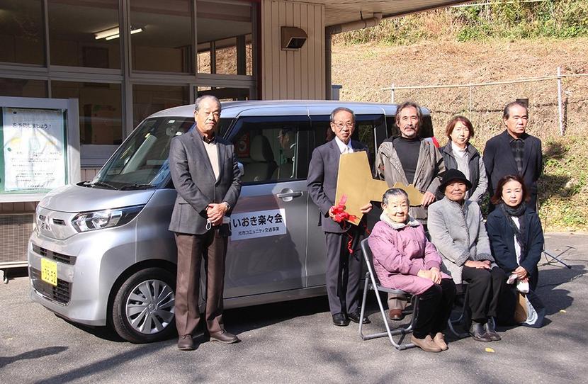 光市がコミュニティ交通事業で室積村伊保木(いおき)の「いおき楽々会」に10年間貸与していた市所有の乗用車が24日、新しい軽乗用車に更新された。引き続き伊保木地...
