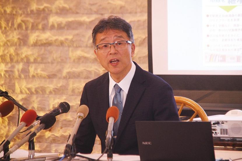 光市長選(10月20日告示、27日投票)に出馬を予定している前市経済部長の芳岡統(よしおか・おさむ)氏(55)=島田=が19日、ホテル松原屋で記者会見を開いて正式に出馬を表明した。今期で引退する市川熙市長(77)の政策を継承する方針を示す一方で、上関原発建設計画では市川市長の「賛成できない」の主張を引き継ぐかどうかは明言せず「2011年に市議会が全会一致で可決した上関原発建設計画凍結を求める県知事あての意見書を民意として尊重する」とした。
