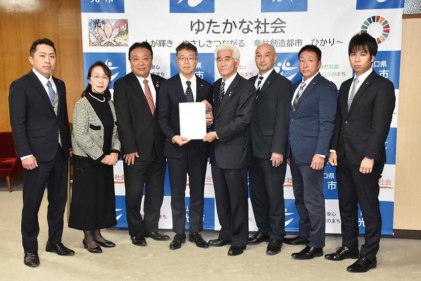 光市議会の最大会派「こう志会」(中本和行代表、7人)は27日、芳岡統市長に来年度予算に関する要求書を手渡した。要求は「地元産業や企業進出支援および賑わい創出」...