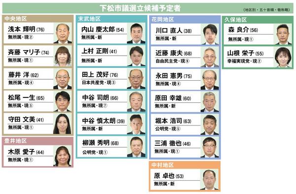 任期満了に伴う下松市議選(定数18)は5日に告示され、予想された現職15人▽新人6人の計21人が立候補を届け出て、投票日の12日(日)に向けて7日間の選挙...