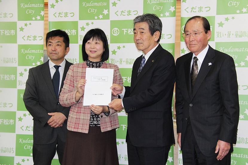 要望書を持つ高田団長(左から2人目)と国井市長ら