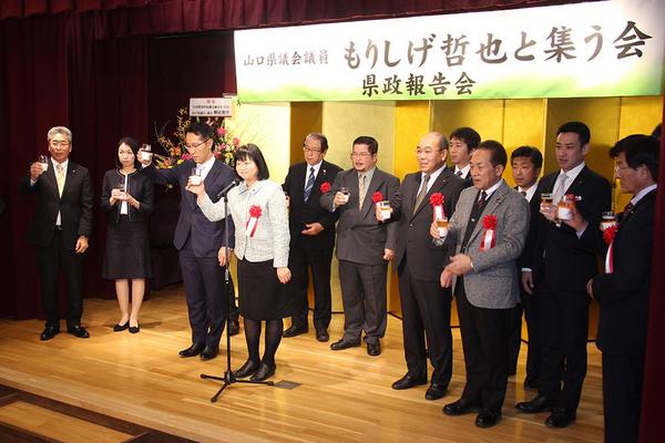 下松市選出の森繁哲也県議(自民)の県政報告会「もりしげ哲也と集う会」が26日、笠戸島の国民宿舎大城で開かれ、支持者約200人が3月29日告示の県議選に挑む森繁...