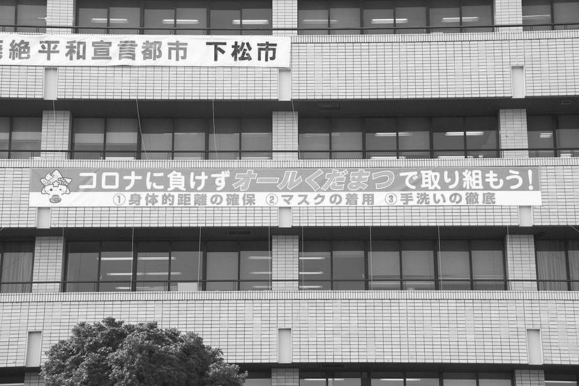 政治下松市下松市は新型コロナウイルス感染症の予防を呼びかける横断幕を12日、市役所本庁に取りつけた。市民に感染への予防啓発や支援策の利用を呼びかける説明書を市内の自治会の回覧板を通じて周知を始めた。
