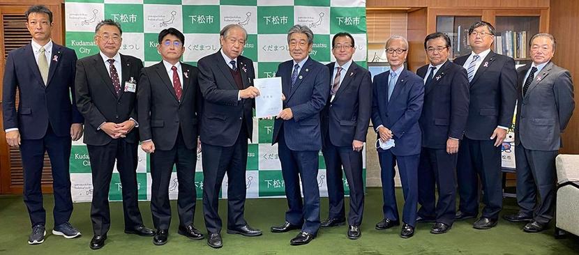 要望書を持つ永田会長(左)と国井市長ら