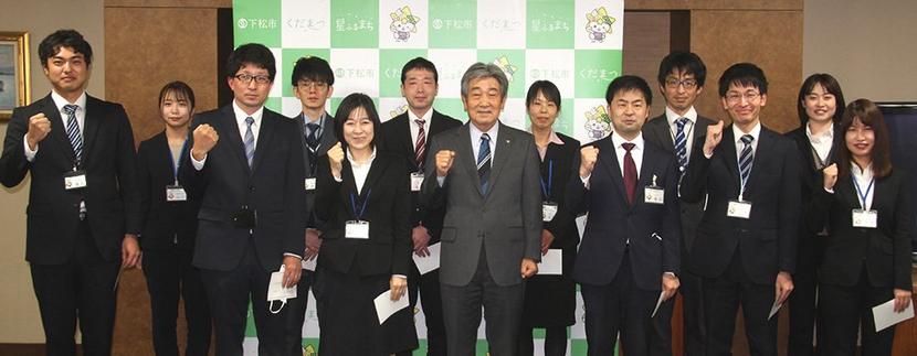 前列は国井市長を囲む新担当職員、後列は旧担当職員