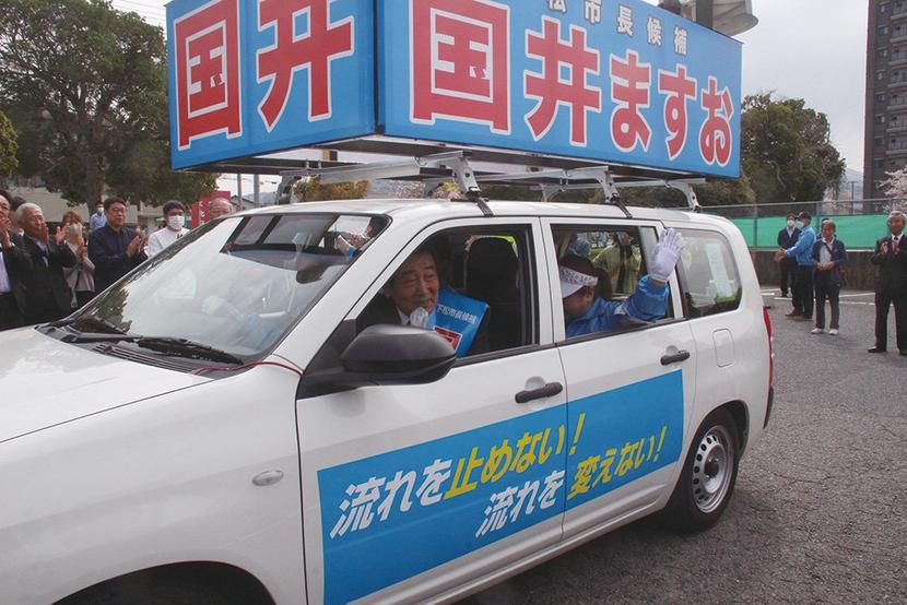 国井陣営は市議20人のうち12人から支持を受け、自由民主党と連合山口の推薦を背景に安定した戦いを展開。総決起大会や出陣式には日立製作所や東洋鋼鈑など市内の主要企業の幹部がそろい、現職の強みを見せた。