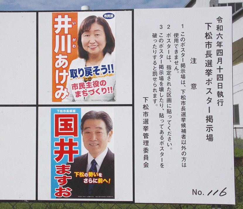政治下松市市民の審判は「取り戻そう!市民主役のまちづくり」の新人か、「下松の勢いをさらに前へ!」の現職か。無所属新人の井川明美候補(68)=楠木町=と無所属現職の国井益雄候補(74)=西柳=(届け出順)が激突する下松市長選は、14日(日)が投開票日。期日前投票の投票率は一昨年の市議選の同時期をやや下回る低調ぶりで、投票率が前回市議選の45.27%を下回る可能性もあり、有権者の関心の行方が注目される。