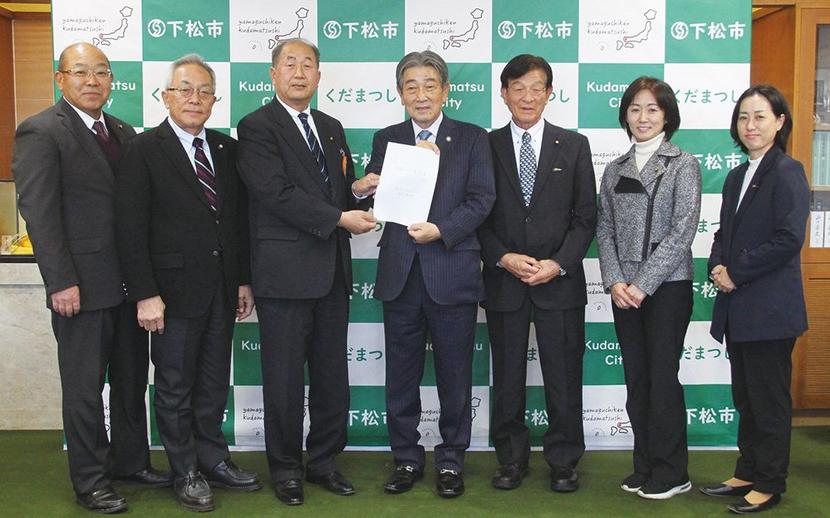 下松市議会の「政友・鐵の会」(浅本輝明代表、6人)は19日、次年度の予算編成に反映を求める15項目の行政要望書を国井益雄市長に提出した。 政友・鐵の会は8月...