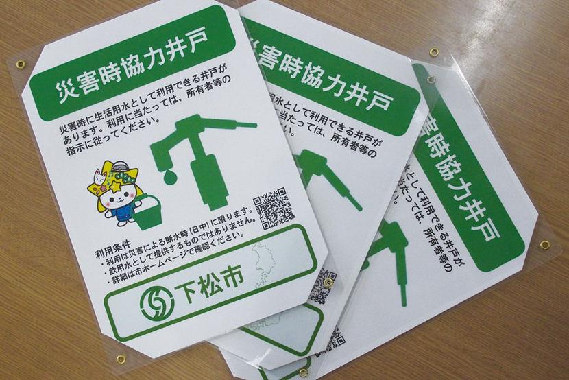 国は災害に備えて分散型の生活用水の確保を全国の自治体に促しており、下松市の取り組みはこれに応えたもの。登録井戸にはラミネート製の「災害時協力井戸」の表示板を渡して掲示を要請。表示板には市マスコットキャラクターの「くだまる」も描かれている。