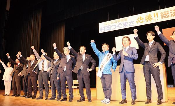 [2026山口県知事選]「成長と安心の好循環を」 現職村岡氏・総決起大会に950人