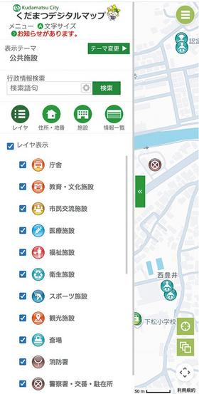 下松市は1月から、市内の地図情報をパソコンやスマートフォンで簡単にチェックが可能な公開型GIS(地理情報システム)「くだまつデジタルマップ」の運用を始めた。こ...
