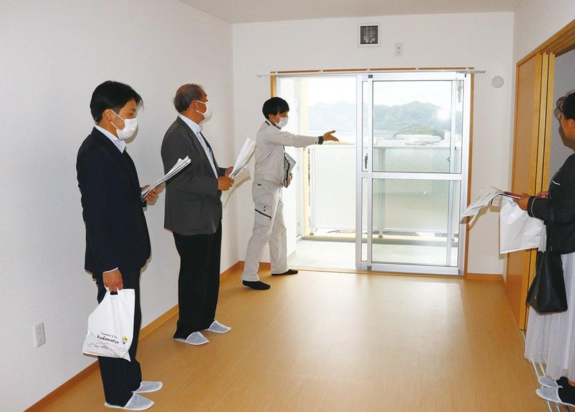 下松市が旗岡4丁目に建設していた旗岡市営住宅C号棟の市議と報道機関向けの完成見学会が22日に開かれた。近藤康夫議長ら市議11人と、新周南新聞社など報道機関2社...
