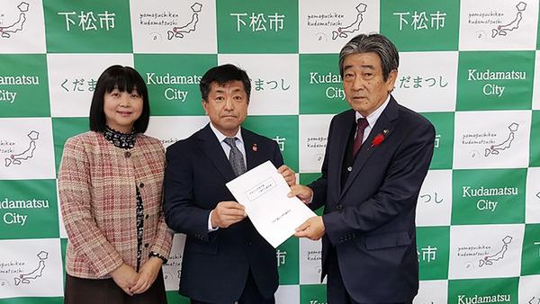 労働団体の連合山口東部地域協議会下松地区会議(川本大悟代表)は19日、下松市に来年度の政策、予算に対する要請書を提出した。西日本豪雨を受けた防災対策や、エレベ...