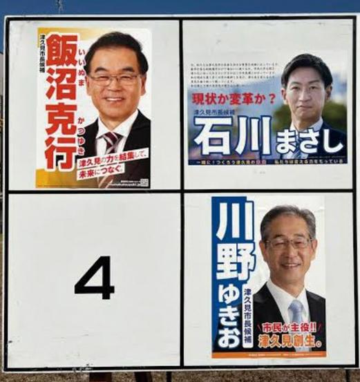 津久見市長選のポスター掲示板