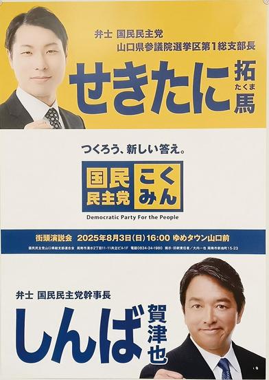 集会告知ポスターは同党の玉木雄一郎代表や榛葉賀津也幹事長とのツーショット。党のイメージを前面に支持拡大を図る。