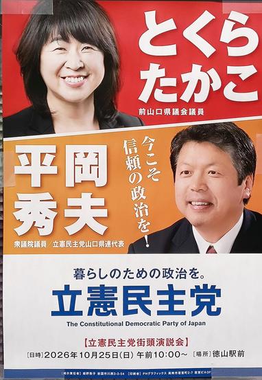 周南地域に同党の拠点はないが、党員が同党ののぼりを持って3市の交差点で辻立ちをしている姿がよく見かけられる。こうした地道な活動が山崎氏の支持拡大にどう響くかが注目される。