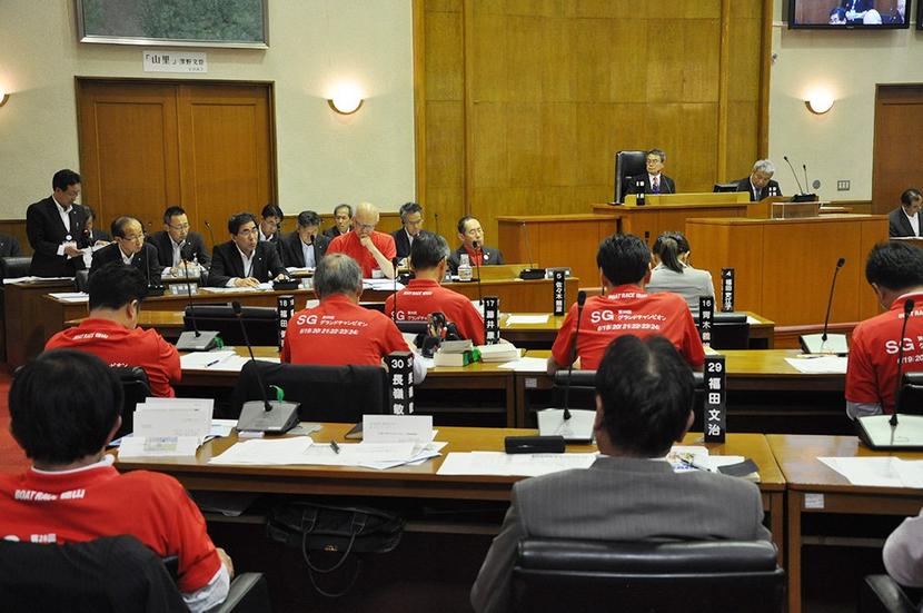 6月19日から周南市のボートレース徳山で開かれるSG競走「グランドチャンピオン」を盛り上げようと、29日、市議会議員や木村市長ら市幹部が宣伝用の赤いポロシャツ...