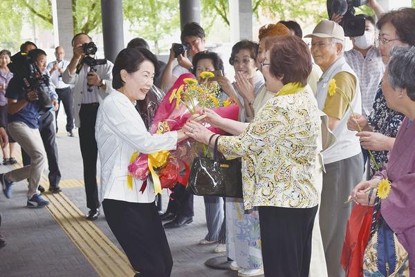 周南市の藤井律子市長(65)は27日、市役所に初登庁した。玄関では支持者や職員500人が歓迎、庁議室で課長級以上の職員100人が出席した就任式では「市民の信頼...