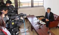 選挙戦に備え共同取材 国井氏を各社インタビュー