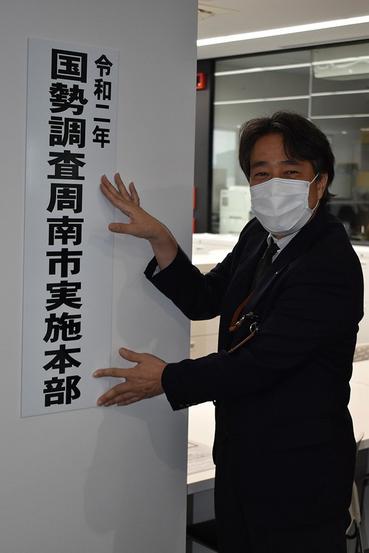 周南市は21日、本庁舎4階の情報企画課に10月1日に実施する国勢調査のための実施本部(本部長・川口洋司企画部長)を設置した。この日は川口本部長が看板をかけた。...