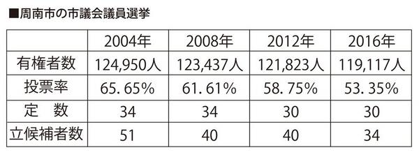 周南市議会議員選挙が31日に告示される。定数30に対して現職24人と新人9人の合わせて33人が立候補を準備。周南市が誕生して5回目の任期満了に伴う市議選だが、...