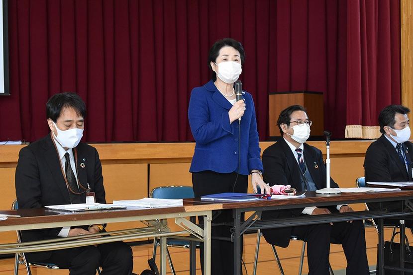 市長はこれまでの経緯を述べたうえで、同地区最大の課題である人口減少を食い止めるためにも、地域の核が必要だとした。その核としてあげたのが現在の総合支所敷地と、コアプラザ、小中学校、図書館などの周辺の2カ所。旧公民館跡地に総合支所、旧鹿野町役場である現在の総合支所敷地に市北部の観光交流拠点を建設する方針を説明した。