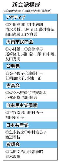 周南市議会(30人)は16日、1年ごとに見直す会派の変更届の提出が締め切られ、新しい会派構成が確定した。7会派のうち周南市議会自由民主党(7人)、六合会(4人...
