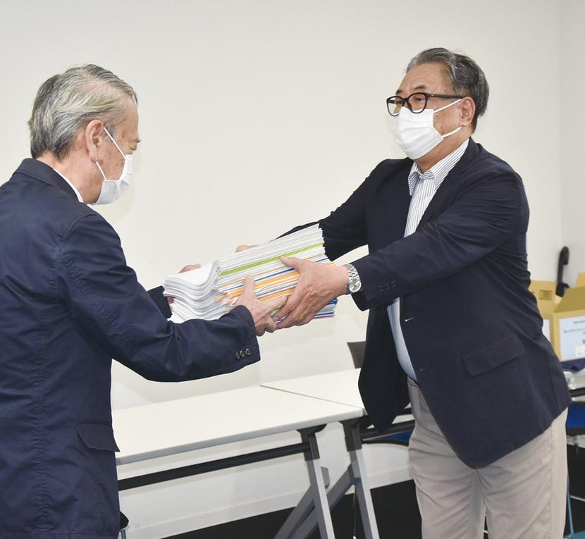 この署名は地方自治法に基づく直接請求による署名で、有権者の50分の1の署名で条例制定を請求できる。この日は請求者の代表の北村俊秀さん(65)が市役所を訪れて松永委員長に手渡した。