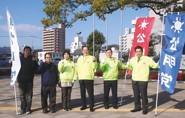 【周南市】県議選上岡氏ら支持訴え 公明党・3市で市議ら新春街頭演説
