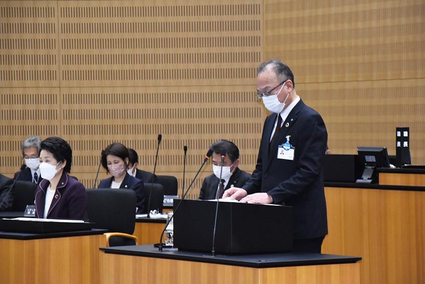 行政報告をする厚東教育長