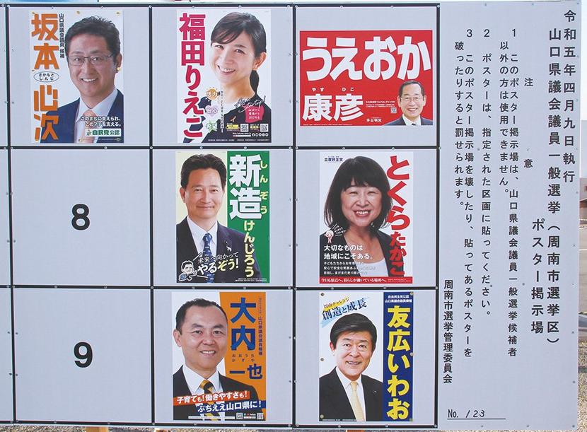 前回は最下位当選だった新造候補は危機感が強い。大手企業が林立する地元新南陽地域や夜市、戸田、湯野といった西部地区の支持に厚みが見え始めており、3期目の必勝にかけている。
