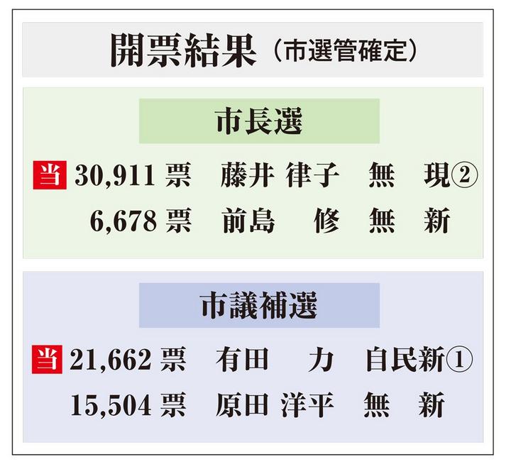 奇をてらった政策はなく、市民が望む事業が中心。前回の3万3395票には及ばなかったが、投票率が下がる中で3万票以上を得たことで、大筋では安定した市政運営が続きそうだ。