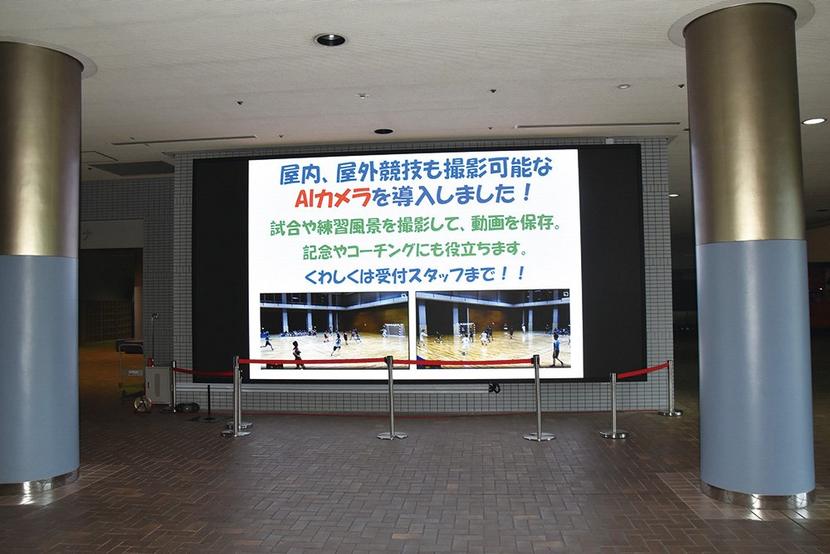 このほか、施設面ではロビーに大型LEDビジョンを設置。これに合わせてAIカメラの貸し出しと、カメラで撮影した映像の販売も始めた。AIカメラや野球やハンドボールなど撮影するスポーツのルールを認識し、ボールや選手の動きに合わせて自動的にカメラの向きやズームが変わり、人がそばにいなくても最適な映像を撮影できるという。