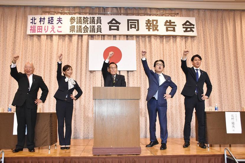 周南市選出の福田吏江子県議の県政報告会が24日、7月と見られる参院議員選挙に山口県選挙区で立候補を予定している自民党の北村経夫参院議員の国政報告会と合同で周南...