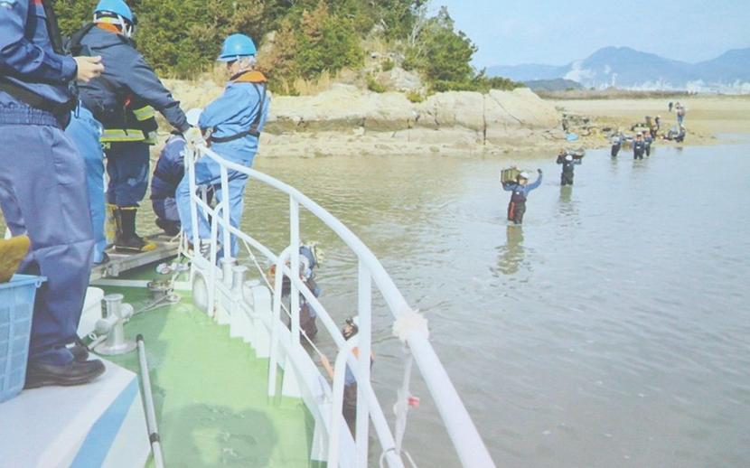 仙島の林野火災時に活躍する「おおつ」(会場で上映の動画より)