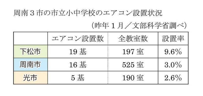 近年の夏場の厳しい暑さを受けて、小、中学校での暑さ対策が周南市でようやく始まり、今年度、中学校14校のうち大規模校5校の普通教室にエアコンが取り付けられる。下...