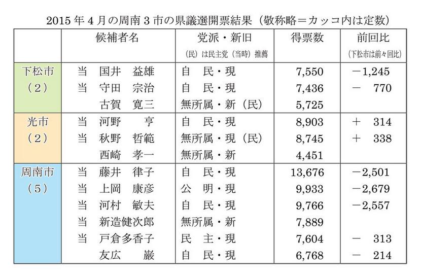 [下松市議選]新人4人当選、議会に新風 18人の新議員決まる 投票率はワースト2